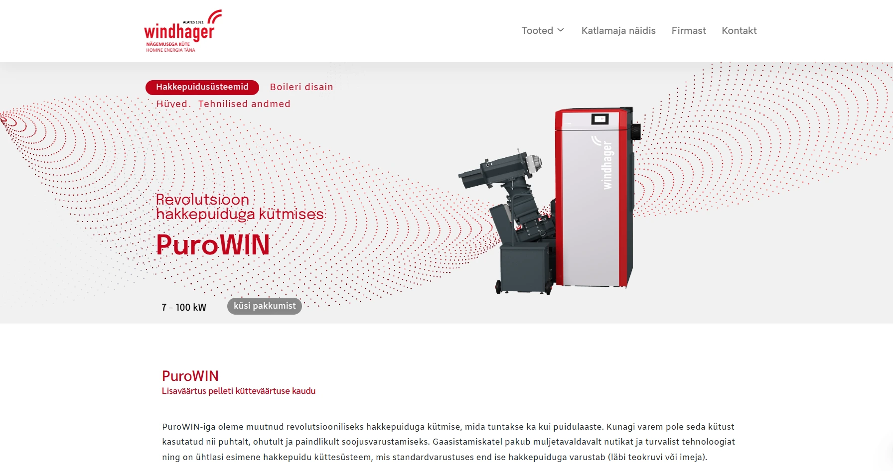 Windhager Estonia is the distributor of heating equipment from the Austrian company. We built and translated the website, which continuously brings new inquiries.